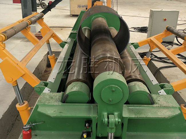 該機優點是板材端部預彎及卷圓可以在同一臺設備上進行。